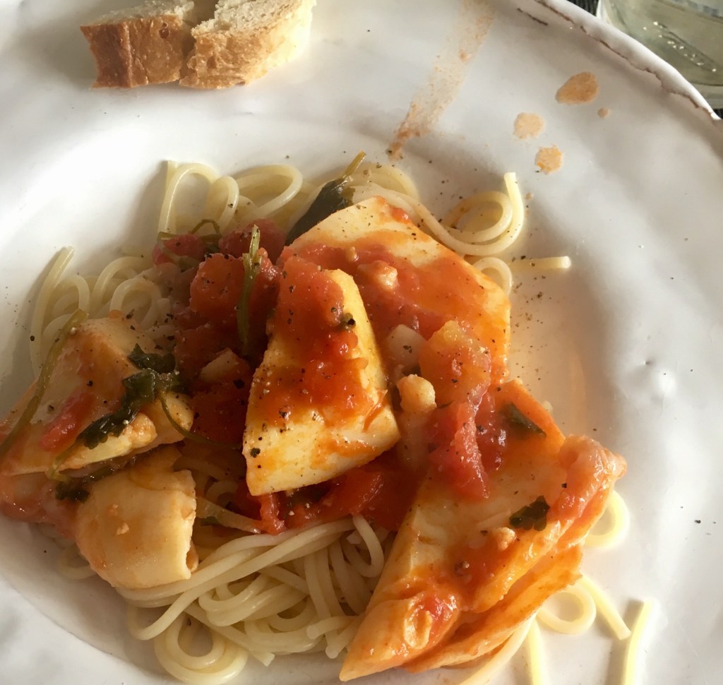 Såhär: Bacalao.Torsk. Torkad vit fisk. Mjäll och delikat efter att den har blötlagts.