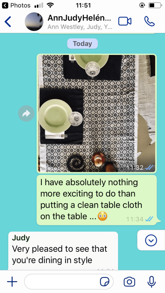 Ur dagliga ‘samtal’ med vänner och grannar, (eftersom livet inte är mer spännande än så just nu) :