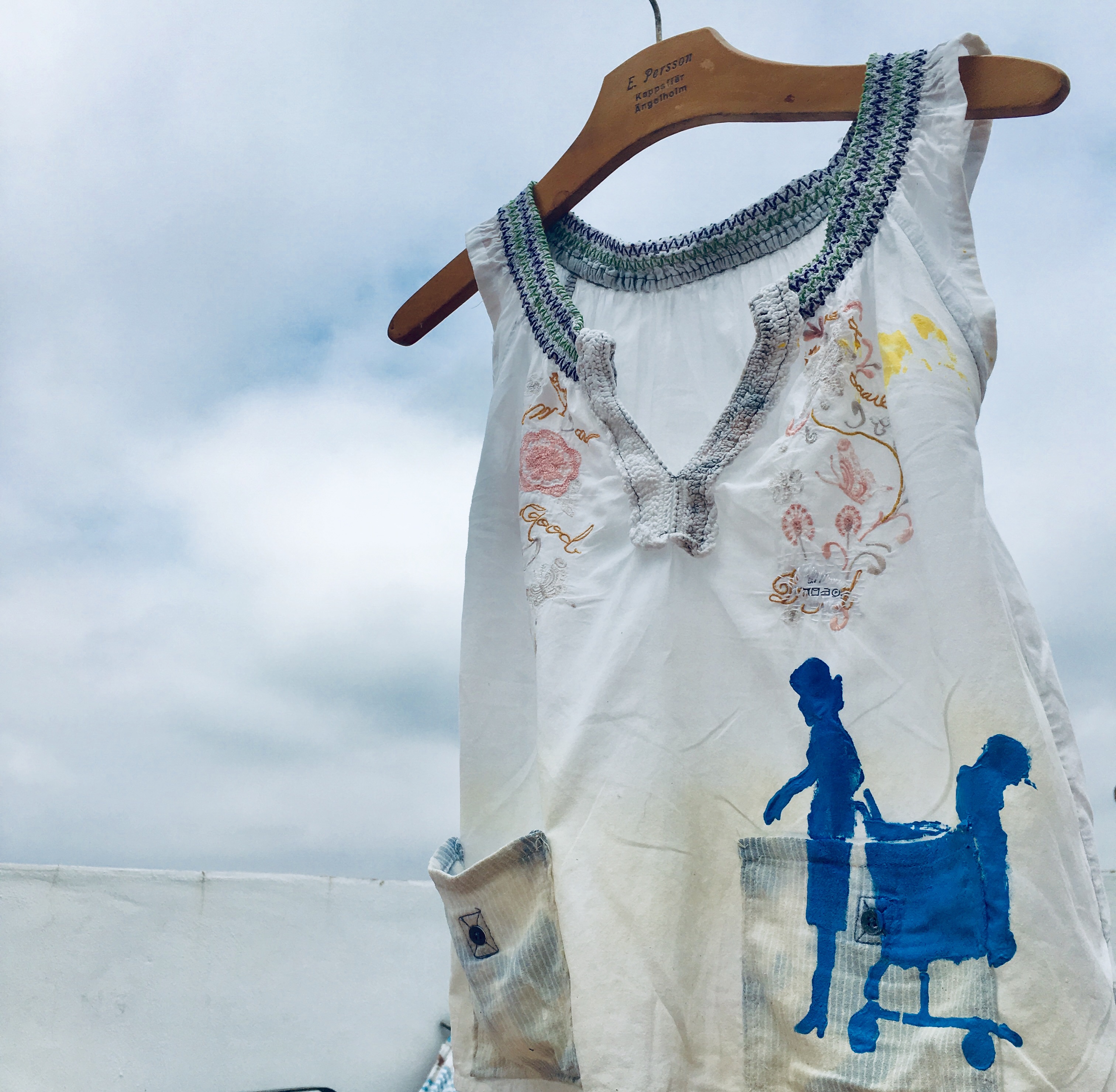Ella återanvänder. Ella tar vad hon har. Ella klipper, färgar, bleker, kapar, sätter ihop, passar in, syr lite, klipper bort det oönskade, sågar av, målar om, flyttar, skruvar, broderar… Ella har inget att förlora och tackar sin lyckliga stjärna. Och hon mäter ytterst sällan.